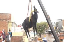 ତିନି ମହଲା ଘରର ଛାତ ଉପରକୁ ଚଢ଼ିଗଲା ଷଣ୍ଢ; ତାକୁ କ୍ରେନ୍ ସାହାଯ୍ୟରେ ତଳକୁ ଅଣାଗଲା